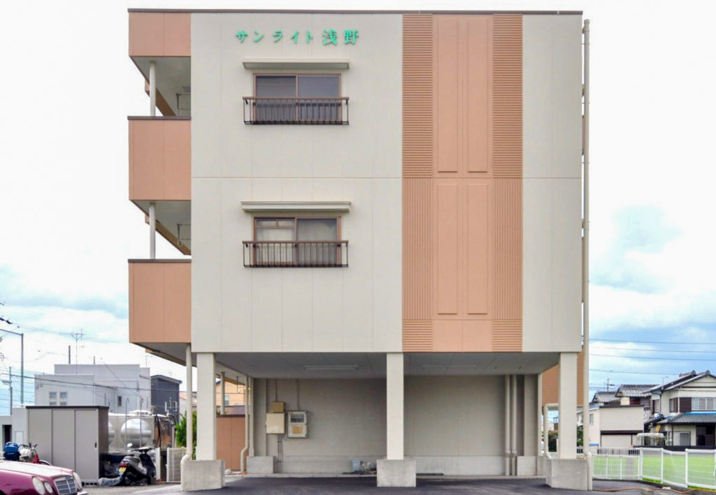 やわらかなホワイトベージュにやや高彩度のオレンジを組み合わせて現代風の表情になりました。また、色相対比の効果で建物が大きく感じられます。