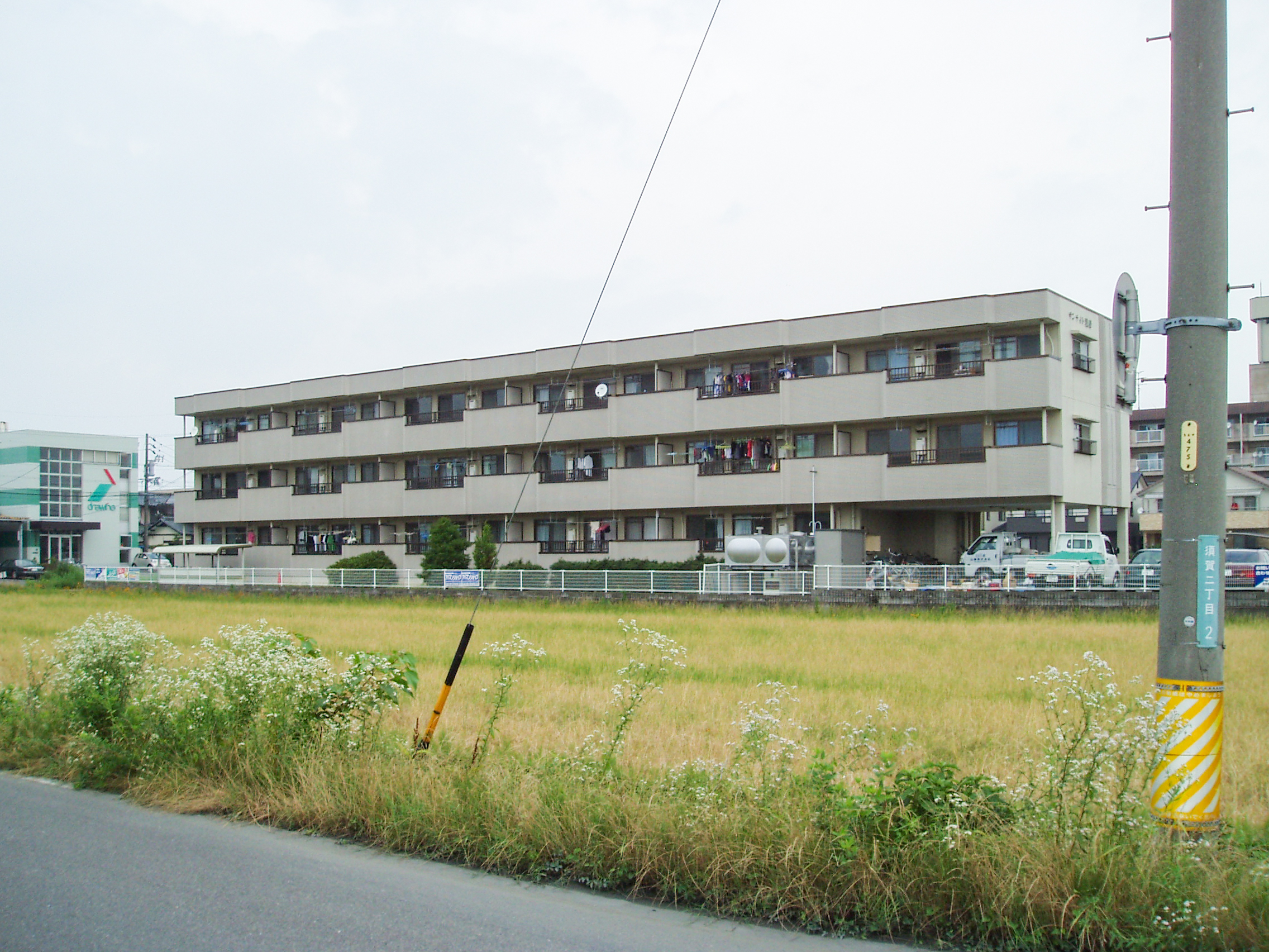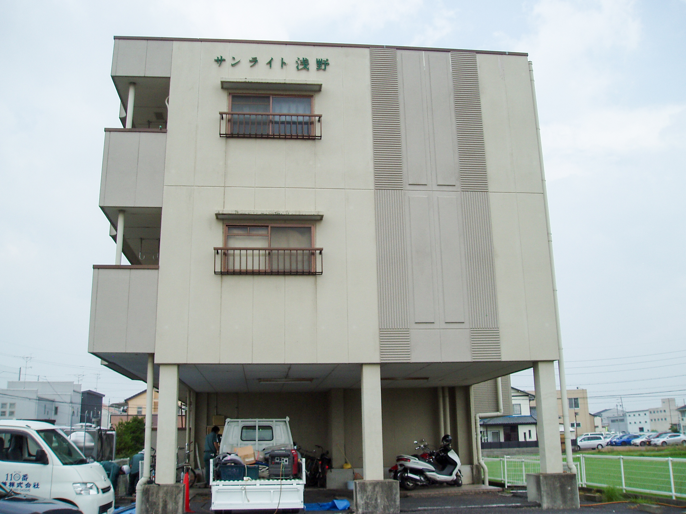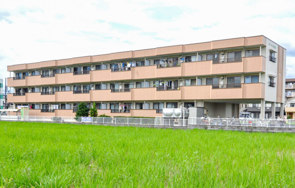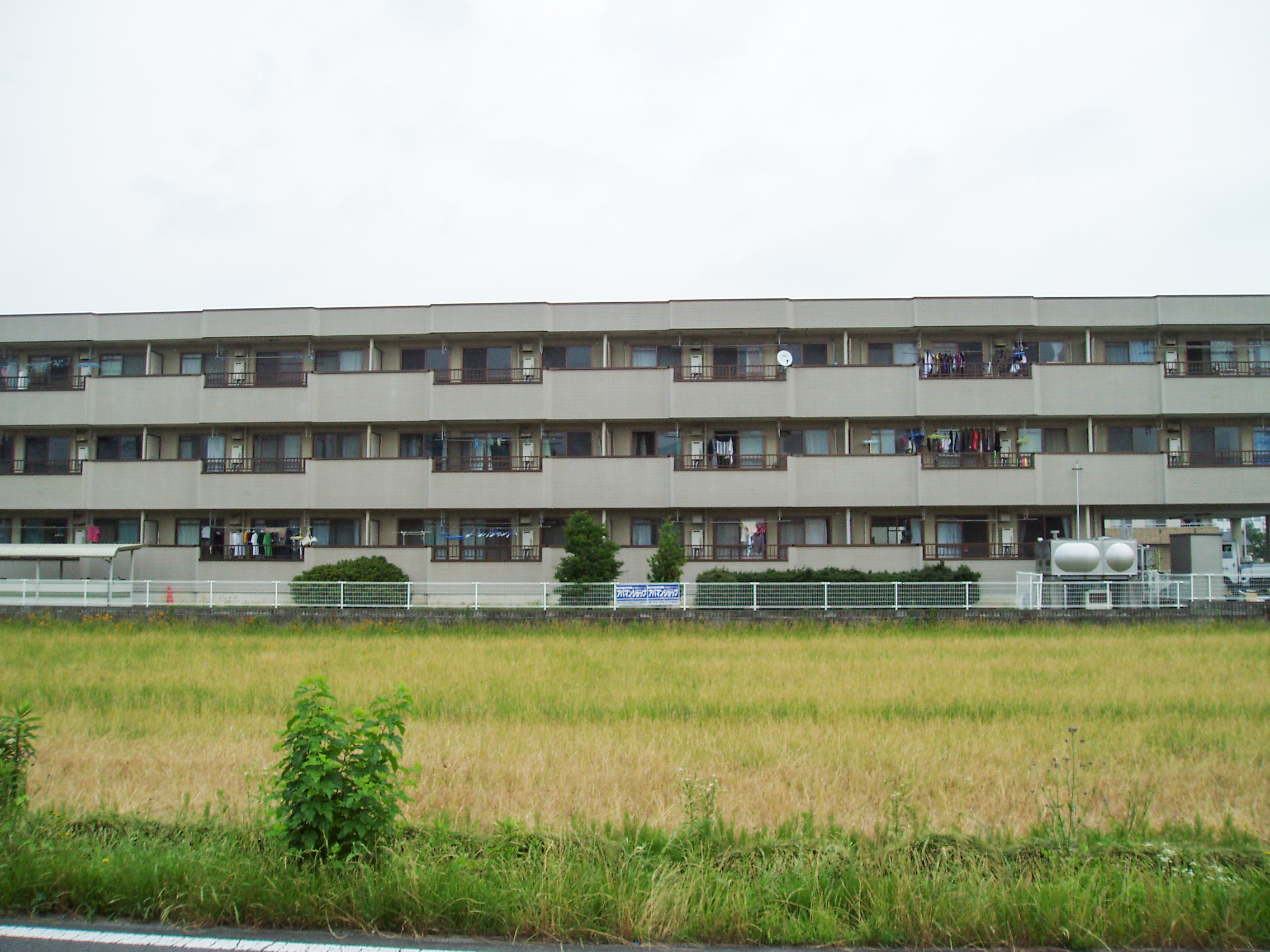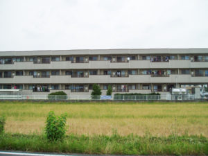 築20年の鉄筋コンクリート造の集合住宅です。外壁の塗装の変色や汚れが見られます。