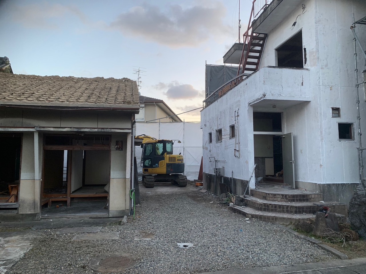 岐阜市内、鉄骨2階建てと木造平屋建て解体工事です。