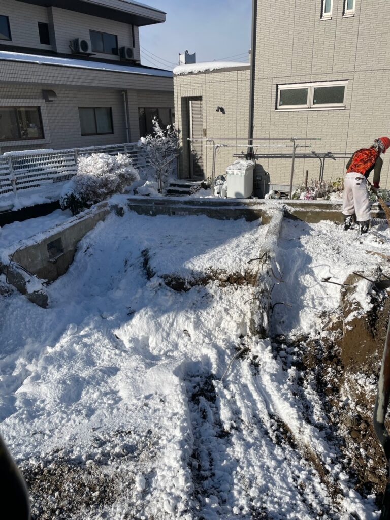 途中に雪が積もった為、工事ストップし除雪のみ行いました。