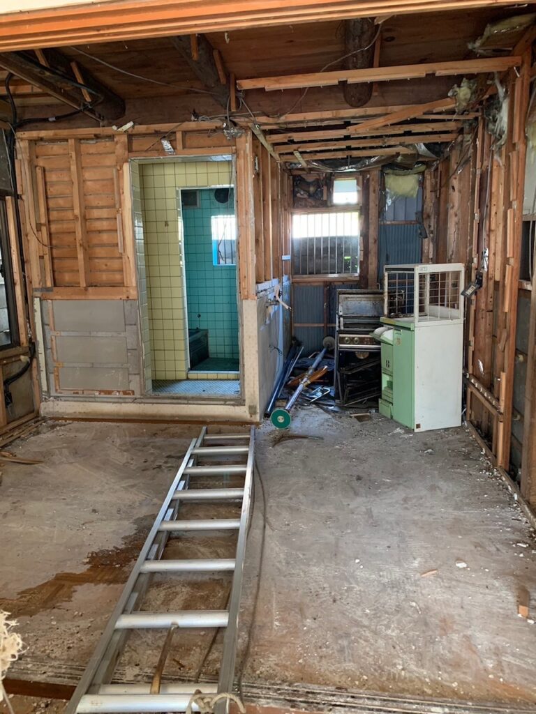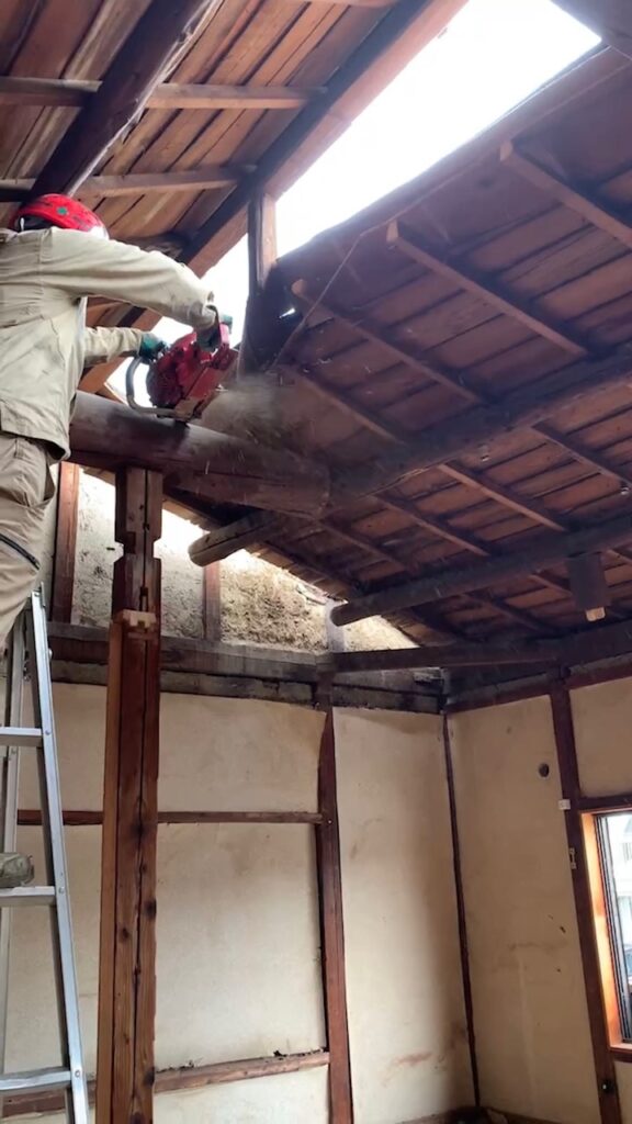 重機を入れるため、人力解体していきます!