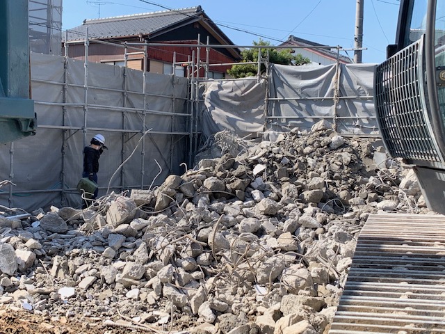築40年の鉄筋コンクリート造3階建てと木造2階建て家屋の解体撤去工事。